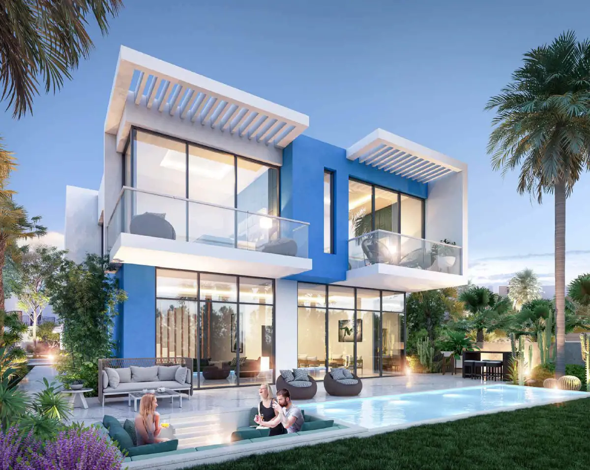 What could be more enchanting than an extravagantly large azure blue lagoon? The edge of the lagoons leads up to a boardwalk to your new home. Presenting Santorini at DAMAC Lagoons, plush townhouses and villas featuring white-washed exteriors and blue touches across, evoking quintessential Mediterranean motifs.